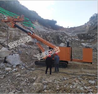 护坡锚固钻机主要适用于:建筑、水利、勘探、深基坑支护,边坡加固等工程,尤其适用于基坑锚杆孔、建筑工地钻探,该钻机采用履带式底盘,行走方便,配套使用麻花钻杆,三叶合金钻头,优点是钻臂的行程高度可达到5.5-20米,日钻孔效率可达400-600米,大大节约了人工成本。