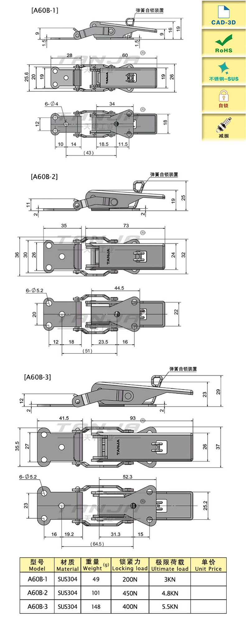公司以专业的研发团队、成熟的生产工艺和卓越的产品品质为发展方向,讲“TANJA”打造成工业五金行业优秀品牌。