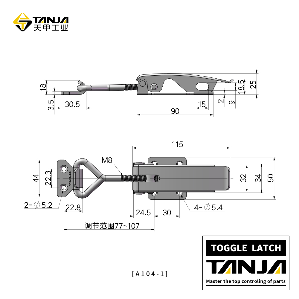 用途:车辆、包装、机械设备、振动设备上 莱州市天甲五金公司专业致力于工业五金产品的设计、研发、生产和销售,目前产品主要有搭扣(又名箱扣、锁扣,普通搭扣,可调搭扣,自锁搭扣,减震搭扣,橡胶搭扣等),铰链(又名合页,有平开铰链,锌合金铰链),夹具等。产品适用于各种工业领域,尤其在食品、厨具、办公家具、健身器材和医疗机械等领域已被广泛应用。目前公司产品种类达3000余种,已与国内外6000余家工厂建立了长期的合作关系,产品远销欧洲、东南亚等45个国家。 公司以专业的研发团队、成熟的生产工艺和卓越的产品品质为发展方向,讲“TANJA”打造成工业五金行业优秀品牌。 北方销售:15666540212 电话/微信 QQ212892360 南方销售:18053556435 电话/微信 QQ2542770428