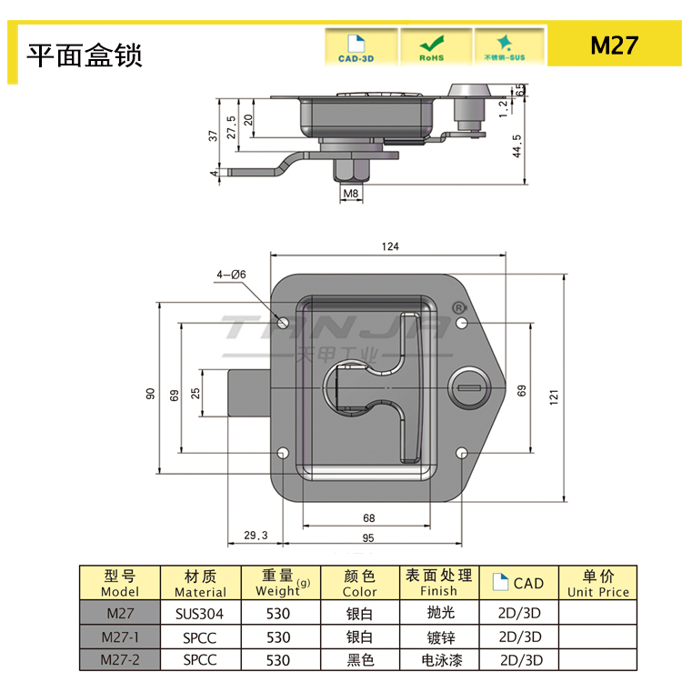 M27平面盒锁_不锈钢车厢门锁驾驶舱不锈钢盒锁半挂车工具箱锁 |