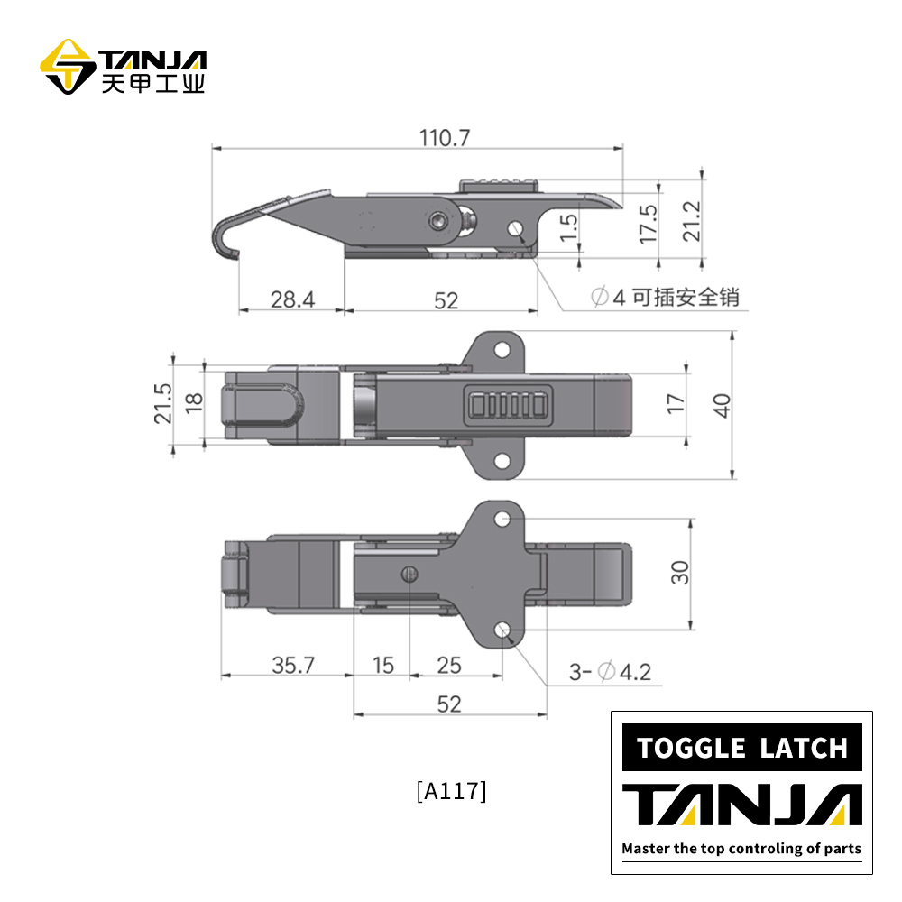 自锁可调节工业搭扣,适用于实验检测仪器,食品,医疗设备等。