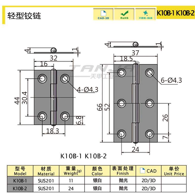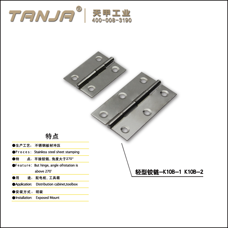 莱州市天甲五金公司专业致力于工业五金产品的设计、研发、生产和销售,目前产品主要有搭扣(又名箱扣、锁扣,普通搭扣,可调搭扣,自锁搭扣,减震搭扣,橡胶搭扣等),铰链(又名合页,有平开铰链,锌合金铰链),夹具等。产品适用于各种工业领域,尤其在食品、厨具、办公家具、健身器材和医疗机械等领域已被广泛应用。目前公司产品种类达3000余种,已与国内外6000余家工厂建立了长期的合作关系,产品远销欧洲、东南亚等45个国家。