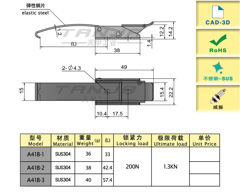 弹性减震搭扣 箱体盖扣