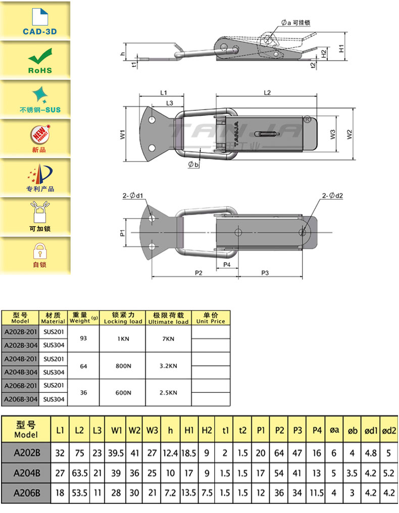 搭扣的锁鼻,不仅可以配锁或铅封,更有人性化的自锁机构,放在搭扣在使用过程中跳脱,更为安全