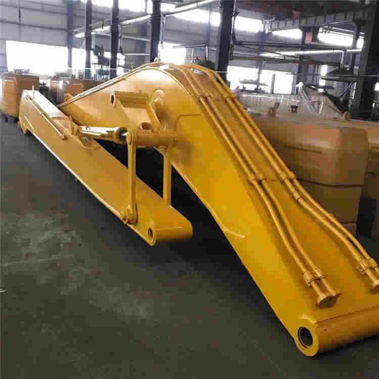 加长臂分为二段式、三段式、四段式,二段式主要适用于土砂、混凝土等建筑搬运、高速公路坡面修整及河道疏通清淤及建筑基础、河道、深沟等土石方挖掘作业等;三段式、四段式主要适用于高层建筑楼体的拆解等作业等。主要的是:要根据加长臂重量的需要,适当加重机器后部配重块的配重重量,以保持前后平衡。避免挖掘机工作中出现事故