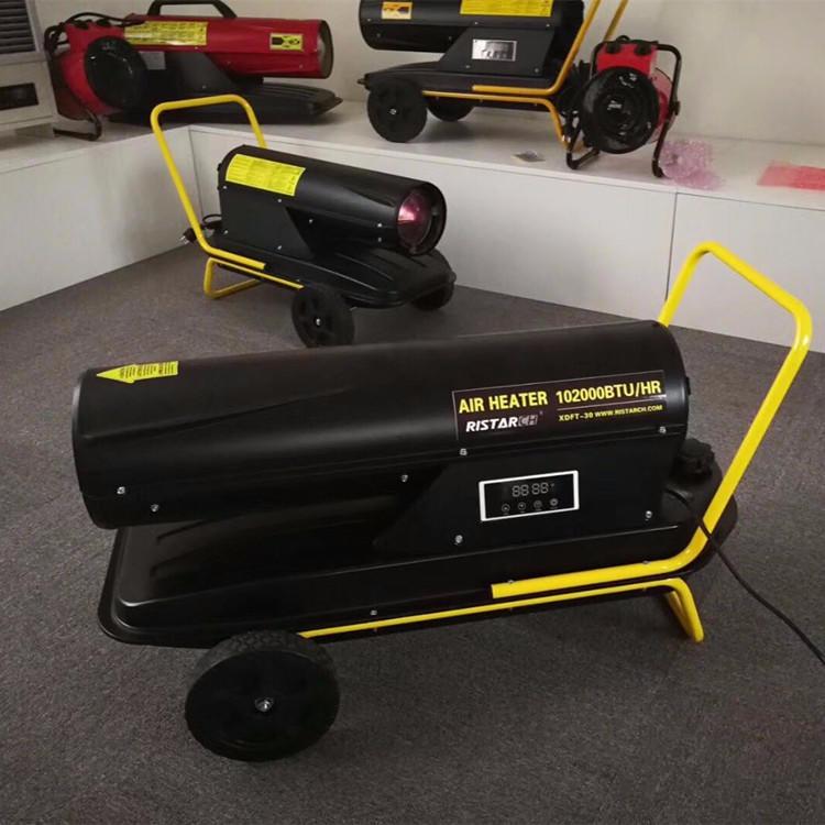 燃油暖风机主要用于:养殖业大棚种植业 木材烘干 畜牧业 工厂 建筑工地及户外取暖工业燃油暖风机主要特点: 无烟、无味、噪音小 采用洁净燃烧技术来长期使用的可靠性和安全性;独立的供氧接口可以在运行时不消耗室内的氧气;大出风量,热量大,加温迅速;操作简单移动方便。