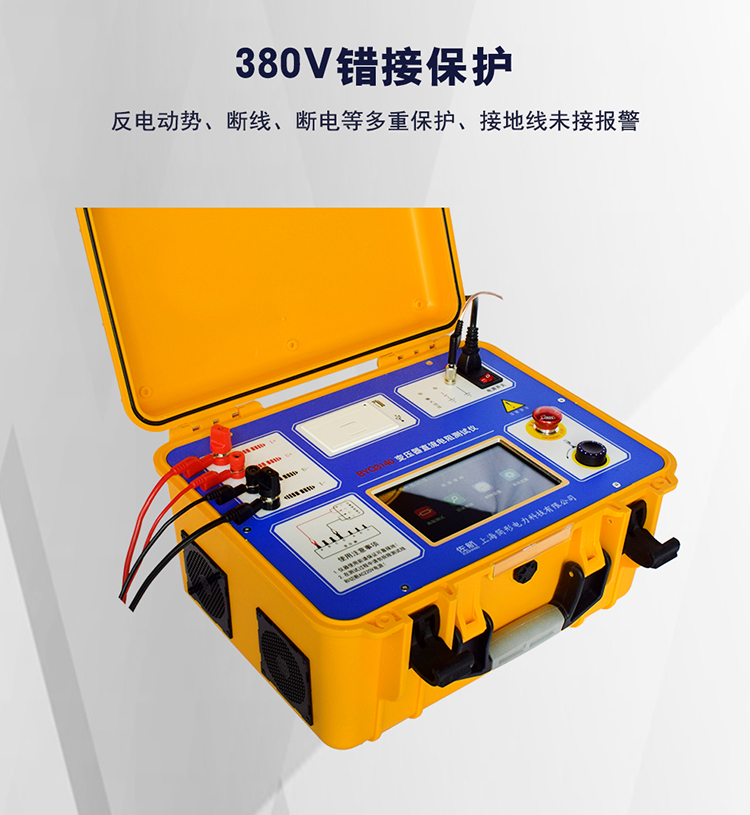 3)仪器具有 380V 错接保护、反dian动势保护、断线保护和断电保护等多种保护功能,以及接地线未接报警功能。