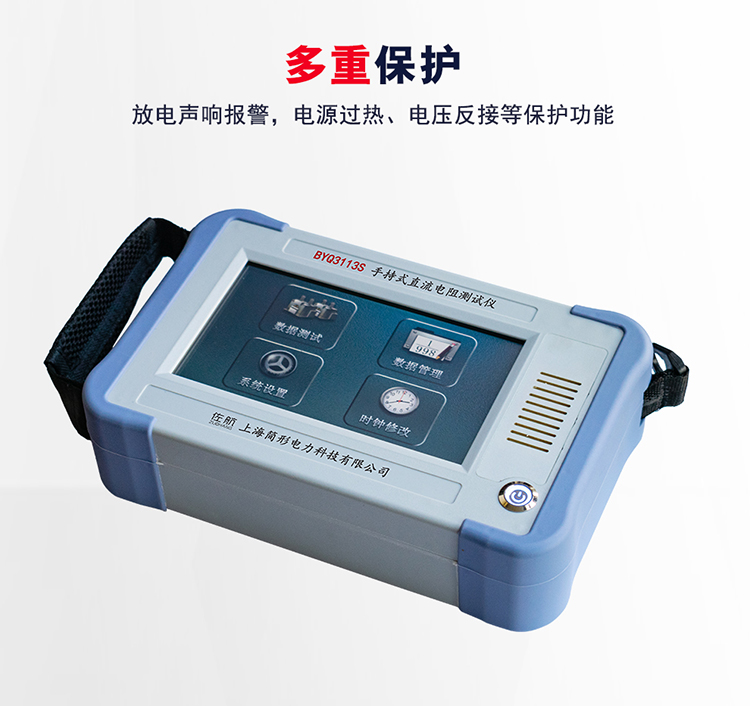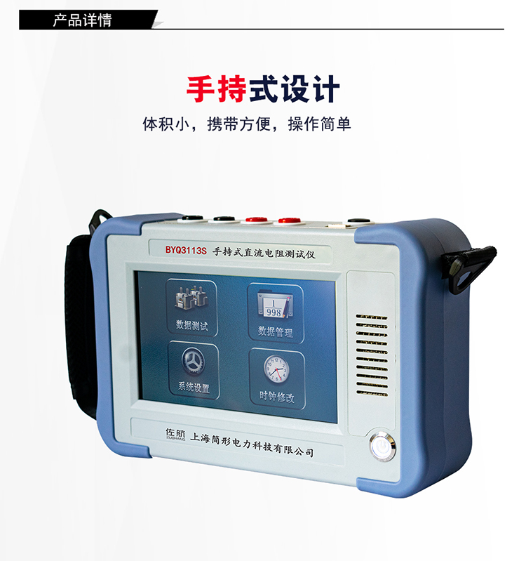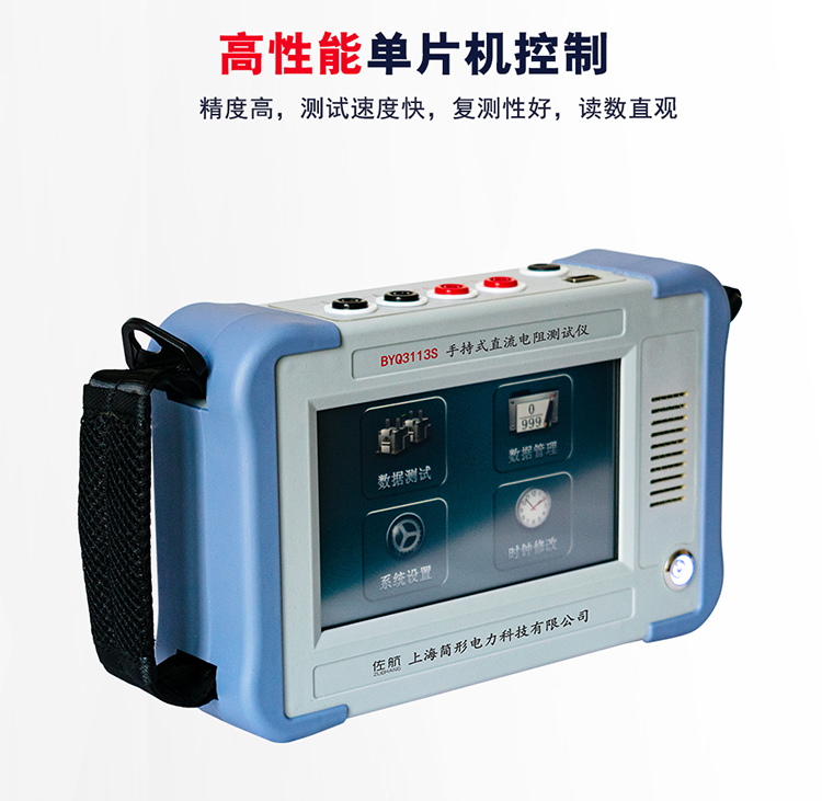 佐航 BYQ3113S手持式直流电阻测试仪。采用全新电源技术,具有体积小、重量轻、输出电流大、重复性好、抗干扰能力强、保护功能完善等特点。整机由高速单片机控制,自动化程度高,具有自动放电和放电报警功能。仪器测试精度高,操作简便,可实现变压器直阻的快速测量。