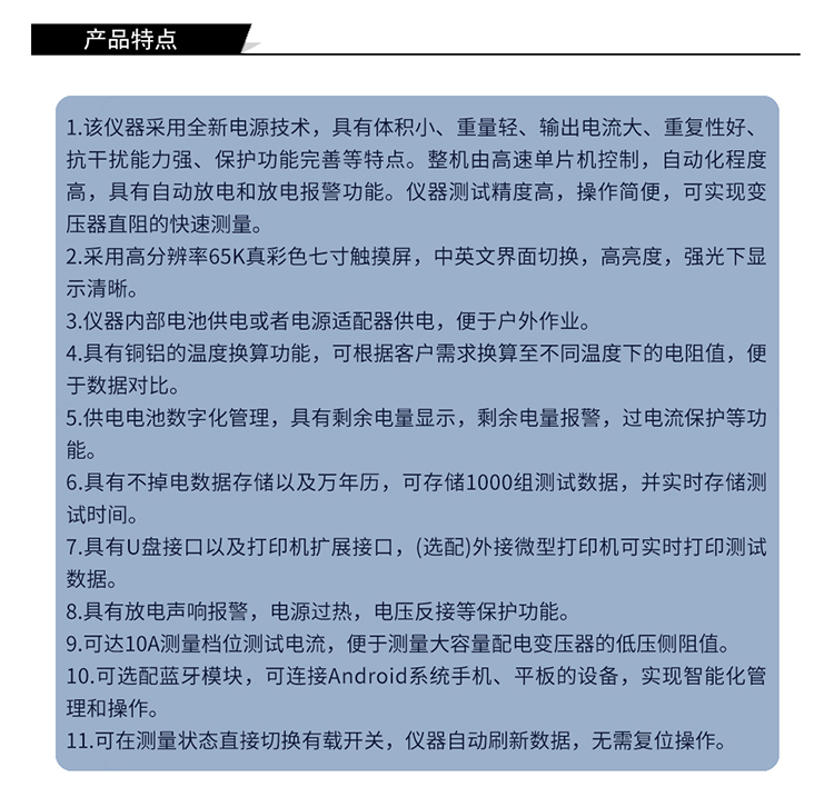3)仪器测试精度高,操作简便,可实现变压器直阻的快速测量。