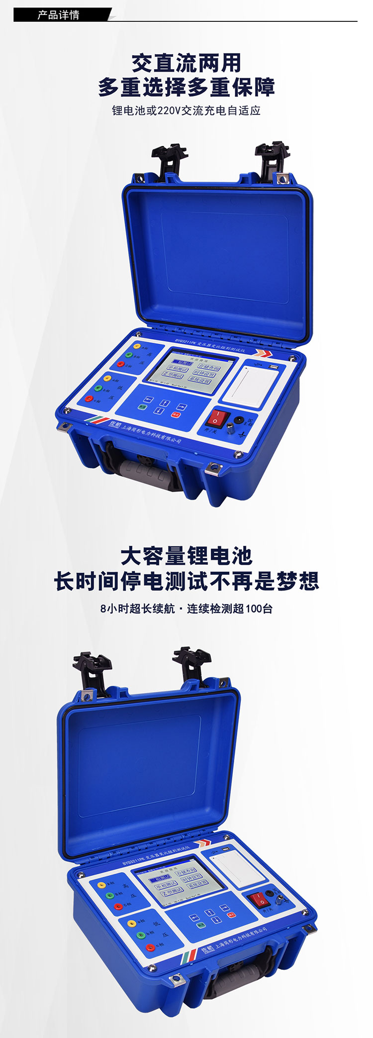1)锂电池供电或者 220V 交流供电自适应;