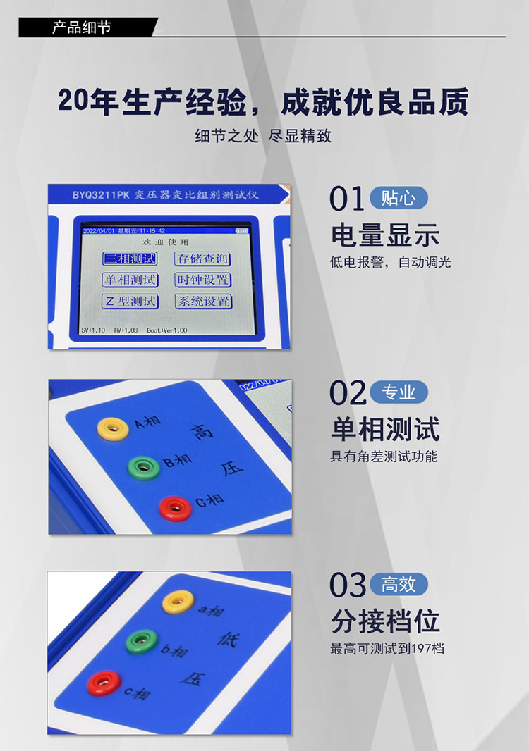 佐航BYQ3211PK变压器变比组别测试仪适用于常规变压器、Z型变压器的变比组别测试,PT的变比测试,测试速度快、准确度高。