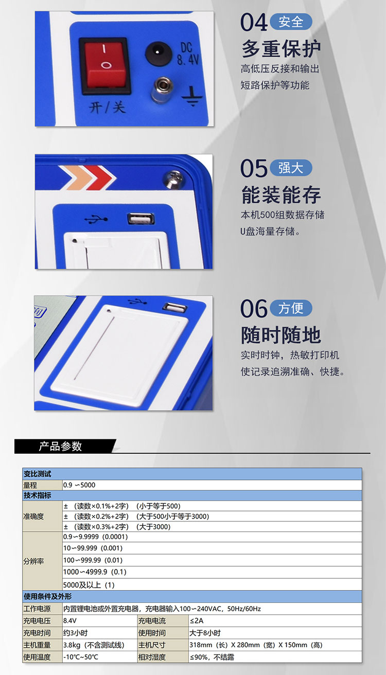 7)具有本机存储500组和优盘存储,方便数据保存。