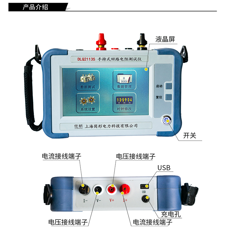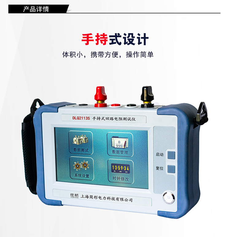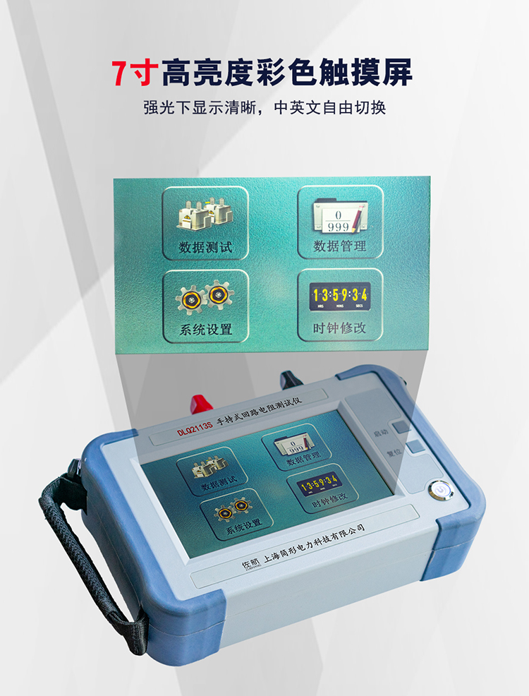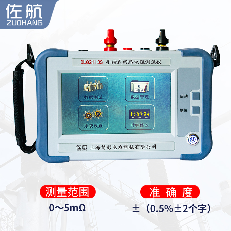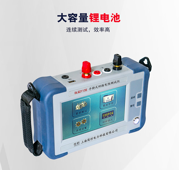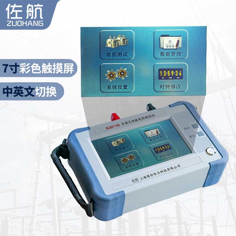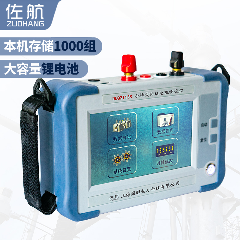 佐航 DLQ2113S 手持式回路电阻测试仪是公司根据 IEC 标准及我国zuiXIN电力执行标准 DL/T845.4- 2004 有关规定,发挥自身技术优势,精心研制的高精度、数字化开关检测仪器。该仪器采用高频大功率恒流开关电源技术,可测得微欧姆级接触电阻。广泛适用于各种开关及电器的接触电阻、回路电阻及电缆电线、焊缝接触电阻的测量,仪器测量数据准确,性能稳定,满足电力、供电部门现场高压开关维修和高压开关厂回路电阻测试的要求。输出电流和测量电阻同时输出在七寸高亮度触摸彩色液晶上,测量结果即可电压输出也可 U 盘存储,掉电存储可满足随时数据查询。