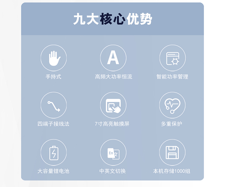 1)具有反电势冲击,测试过程中断线以及断电,电源过热等多种保护功能,能可靠保护反电势对仪器的冲击,并同步声响报警。