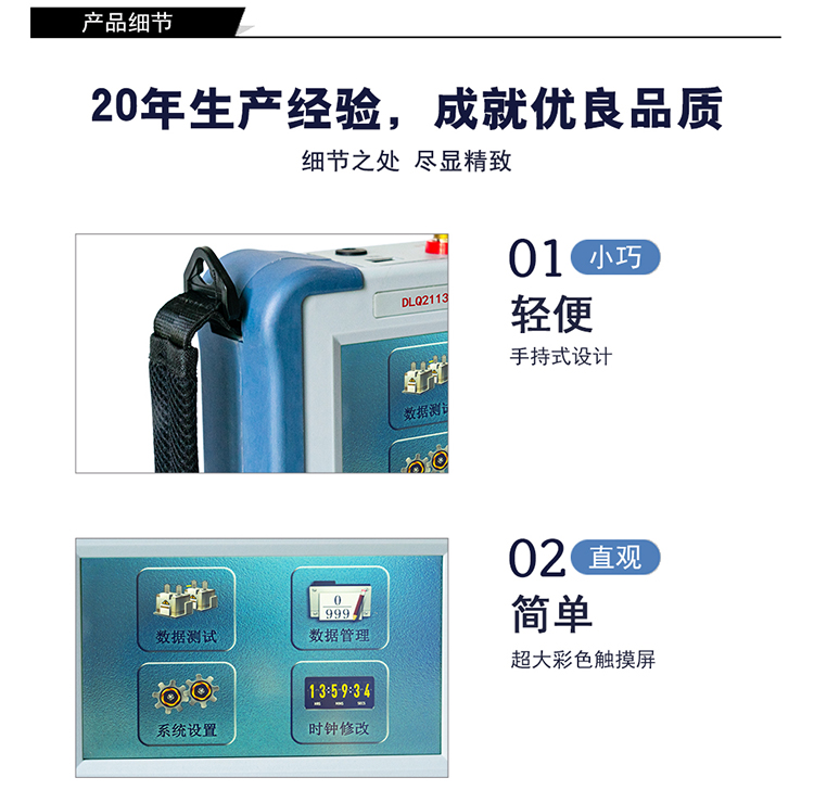 8)仪器自带万年历时钟和掉电存储,可存储 1000 组测试数据,随时查阅。