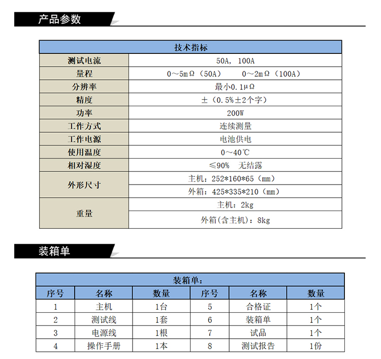 量程:0~5mΩ(50A) 0~2mΩ(100A)