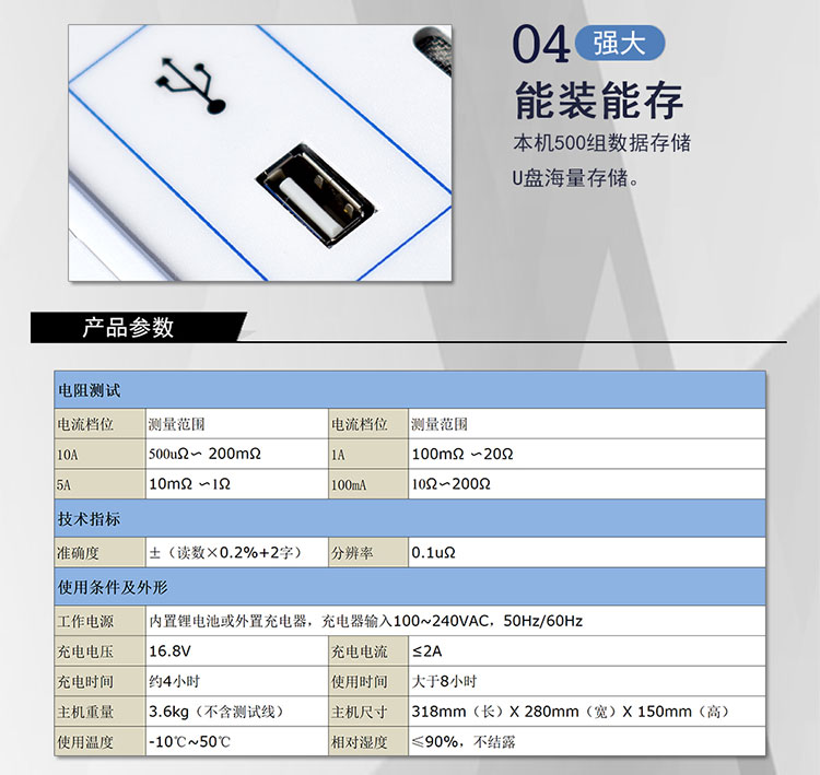 3)量程宽、精度高,500uΩ~200Ω。