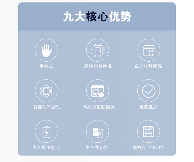 5)仪器自带掉电存储,可存储 1000 组测试数据,可随时查阅。