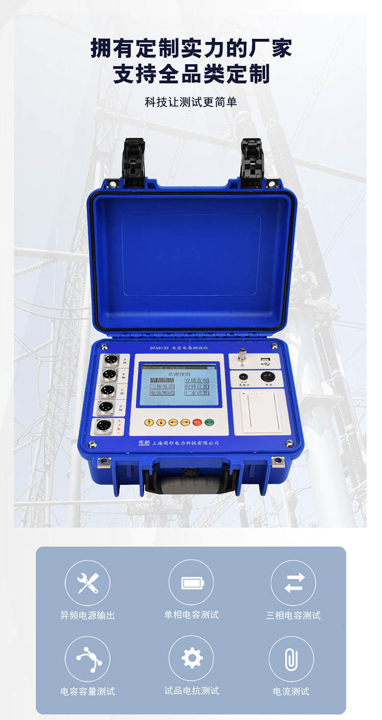 我公司研制的佐航 QTA9132 电容电感测试仪采用高精度、大开口钳形电流互感器进行电流测量,内置大容量锂电池,使用异频抗干扰电源输出,测试精度高、数据稳定,具有ji强的抗干扰能力,能在强磁场环境中进行测试而精度不受影响,是一款高性能、便携式专用补偿电容器测试仪。仪器不仅能测试单相电容器,还具有三相电容器测试功能,针对不